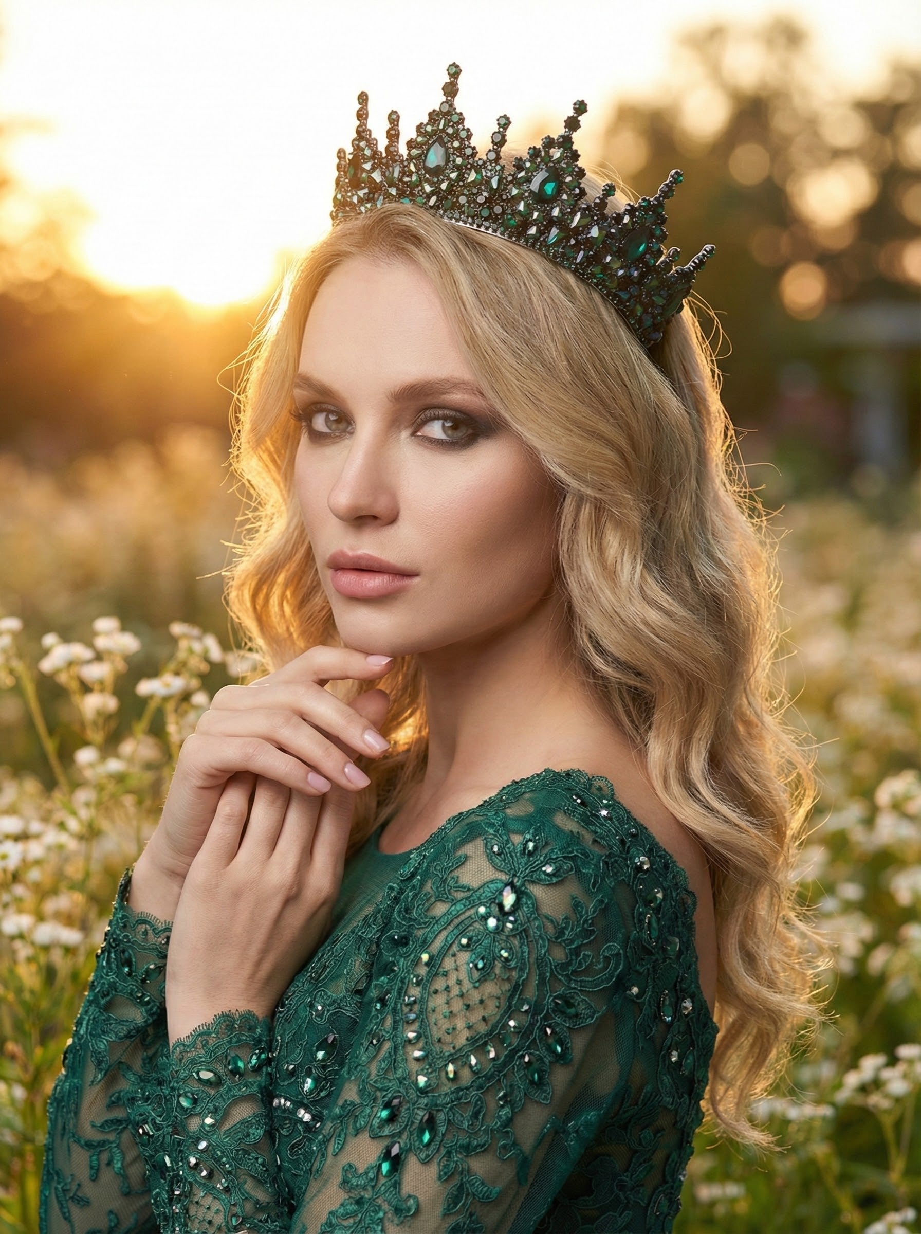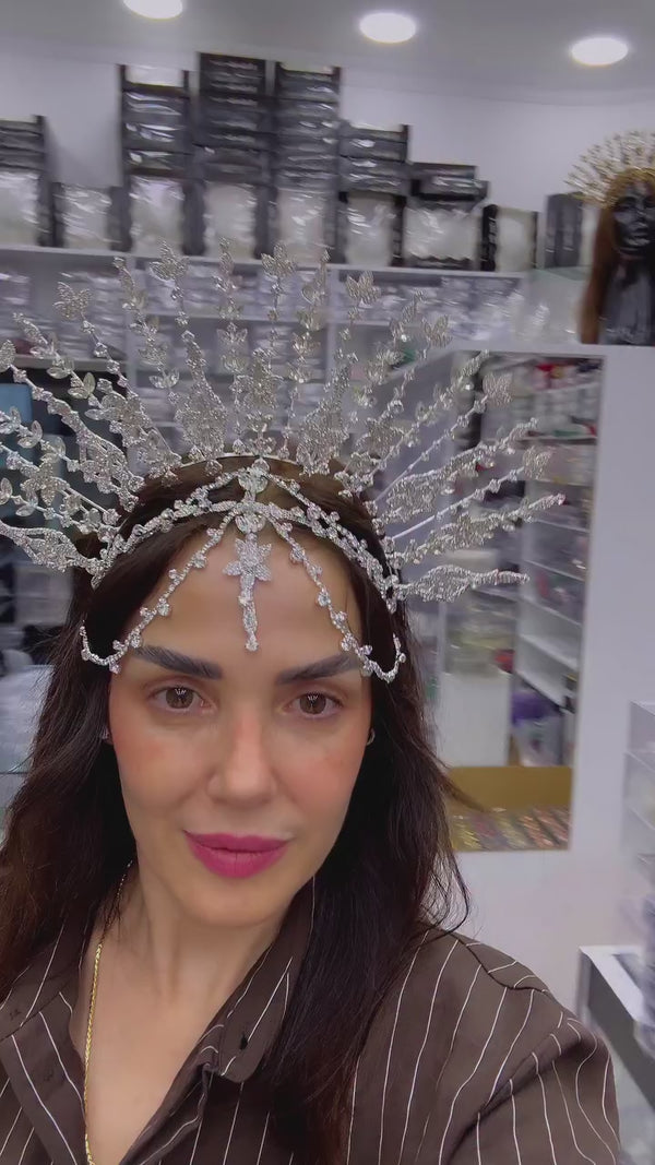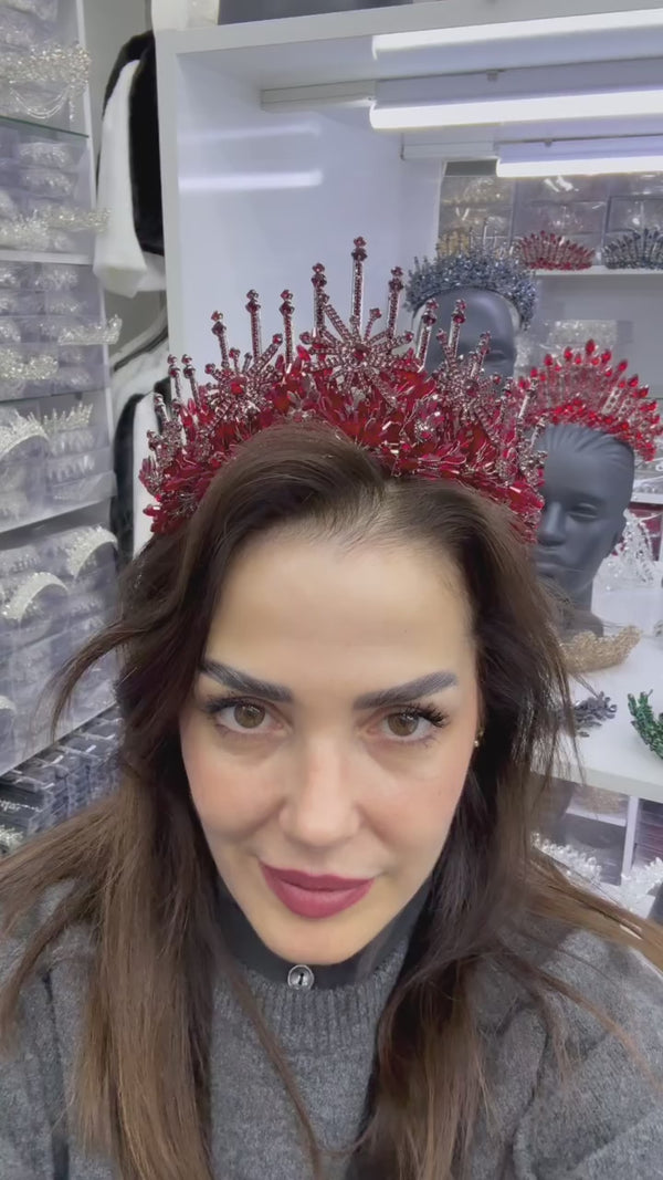 El Yapımı Kristal Gelin Tacı – Kraliçe Modeli Taç, Yüksek Formlu Işıltılı Taç