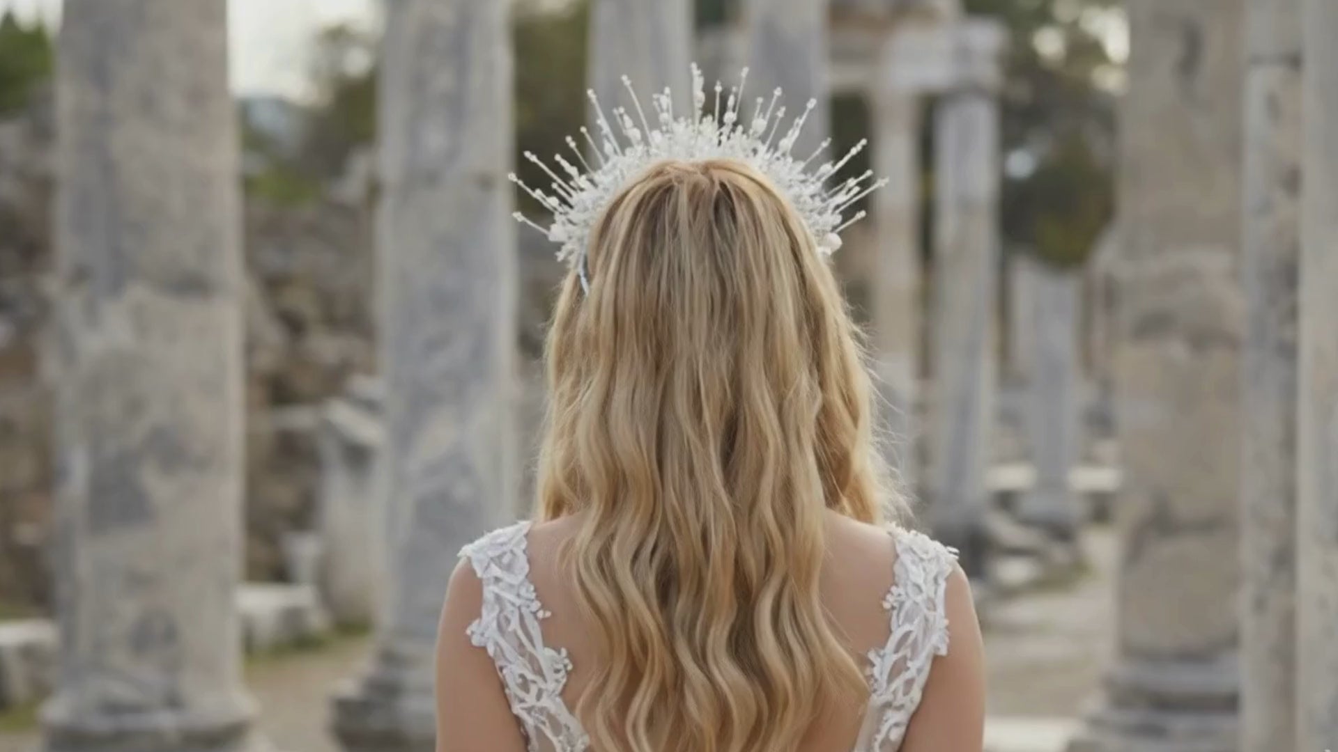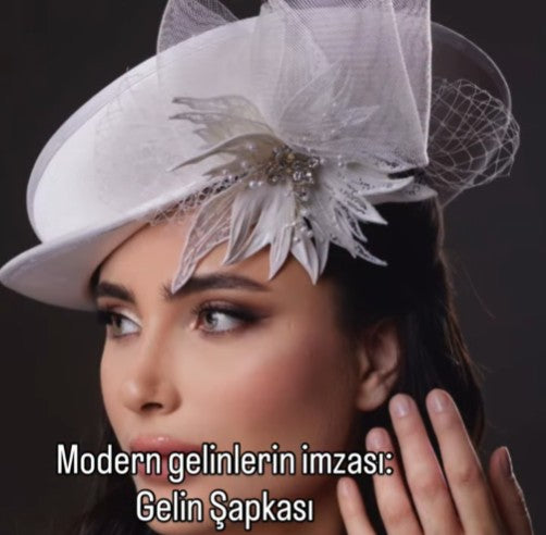 El Yapımı İnci Detaylı Güneş Formlu Gelin Tacı