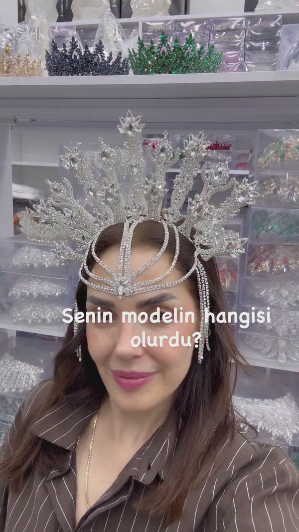 Işıltılı Kristal Gelin Tacı – 7 Renk Seçeneğiyle Zarafetin Ta Kendisi